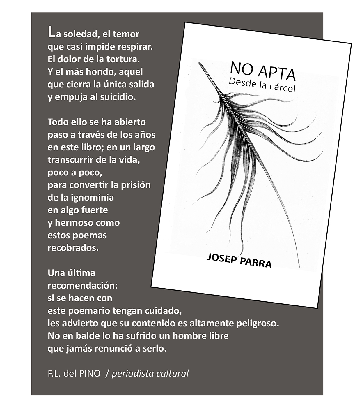 Con esta recopilación poética he tratado de engrosar una parte de la castigada memória histórica. Todos los poemas fueron escritos en los penales de Jaén y Pontevedra entre los años 1971 y 1975, salvo dos en la cárcel Modelo de Barcelona.