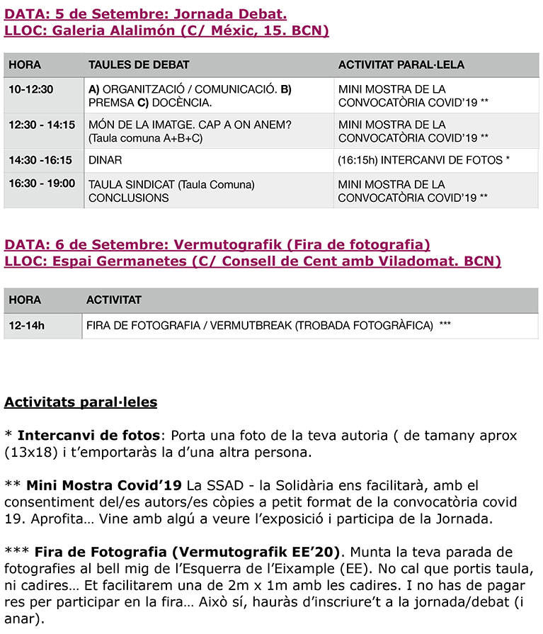 La primera activitat sindical prevista per després de vacances és la JORNADA de DEBAT organitzada per la SSAD IMAGINEM SINDICAT el dissabte 5 de setembre, a la galeria ALALIMÓN de Barcelona.
