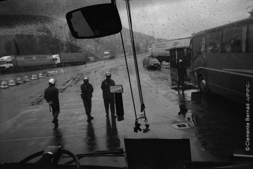 Irun, 1996, Agents del CNP detenen a la frontera els autocars que tornen d’una marxa a Brusel·les contra la dispersió dels presos bascs.