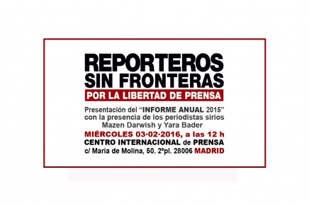 Convocatoria de prensa para presentación en Madrid del “INFORME ANUAL 2015” de Reporteros Sin Fronteras (RSF), el miércoles 03·02·2016, a las 12 h, en el Centro Internacional de Prensa.