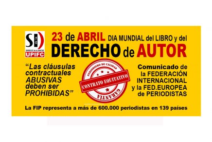 23 de ABRIL Día Mundial del Libro y del DERECHO DE AUTOR “las prácticas contractuales desleales deben ser prohibidas” Los legisladores deben tomar medidas concretas contra las cláusulas abusivas. Este es el mensaje de la Federación Internacional de Periodistas (FIP) -que representa a más de 600.000 periodistas en 139 países- y la Federación Europea de Periodistas […]
